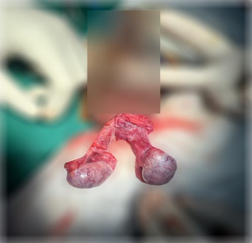 Tiến hành đưa tinh hoàn 2 bên vào lại bao tinh hoàn theo đúng cấu trúc giải phẫu, cố định tinh 2 hoàn 2 bên vào cân cơ bìu bìu. Đóng vết mổ từng lớp. Kết thúc phẫu thuật.
