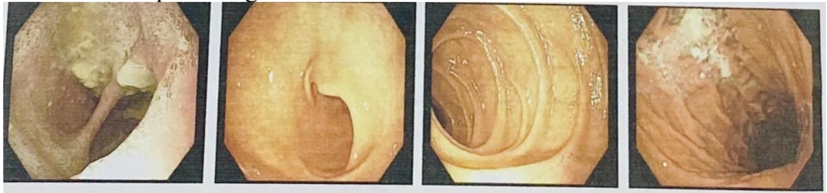 1. Trường hợp thứ nhất: Bệnh nhân nam, 48 tuổi vào Bệnh viện Trường Đại học Y Dược Cần Thơ vì khó nuốt, cách nhập viện khoảng 1 năm, bệnh nhân cảm thấy khó nuốt với thức ăn đặc, cảm giác khó chịu sau xương ức, thỉnh thoảng có ợ nóng và nôn ra thức ăn. Cách nhập viện # 3 tháng, bệnh nhân cảm giác nuốt nghẹn với thức ăn lỏng, nước, cảm giác khó tiêu, ợ hơi nhiều sau ăn, đôi khi có ho khan, sụt cân # 2-3 kg/năm. Không có yếu tố tăng nặng hoặc giảm nhẹ cụ thể, khám sức khỏe không phát hiện bất thường. Chỉ số BMI của bệnh nhân trong giới hạn bình thường. Khi khám, thấy bụng mềm nhưng có cảm giác đau vừa phải ở thượng vị. Điện tâm đồ, siêu âm tim và chụp X-quang phổi của bệnh nhân đều bình thường. Vì vậy, các nguyên nhân tim và phổi đã được loại trừ. Các xét nghiệm của bệnh nhân bao gồm xét nghiệm máu thường quy, sinh hóa và siêu âm ổ bụng chưa ghi nhận bất thường. X-quang thực quản-dạ dày có uống thuốc cản quang: túi thừa thực quản 1/3 dưới. MSCT ngực: Túi thừa thực quản 1/3 dưới, tổn thương mô kẽ và xơ đỉnh phổi (P) nghĩ tổn thương cũ