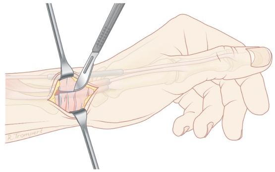 Hình 5. Phẫu thuật giải phóng bao gân viêm