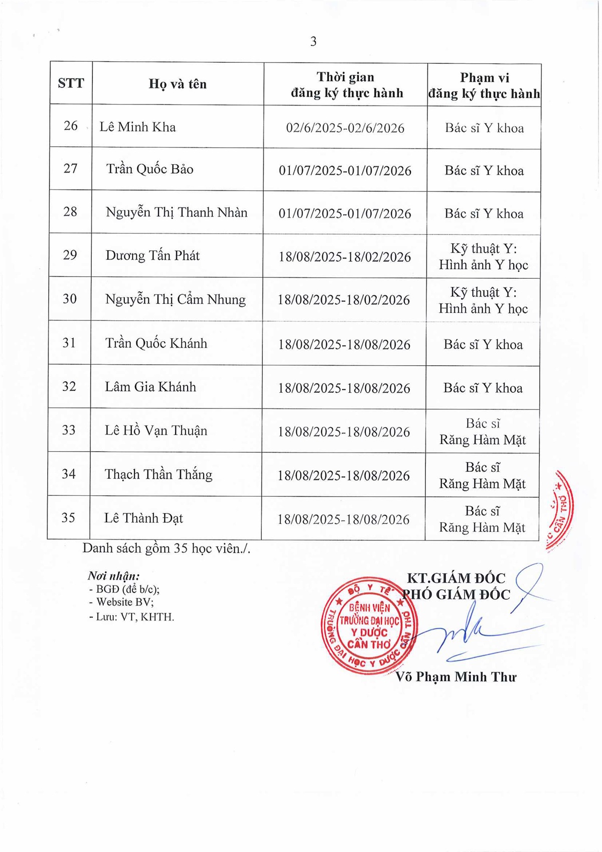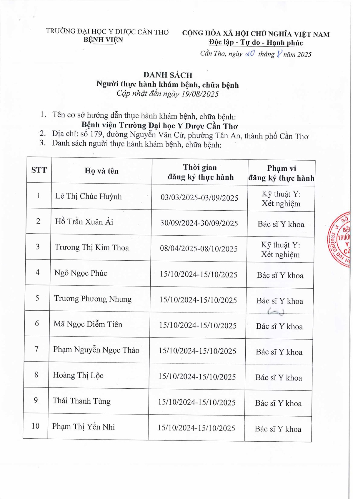 Danh sách người thực hành khám bệnh, chữa bệnh, cập nhật đến ngày 19/8/2025.