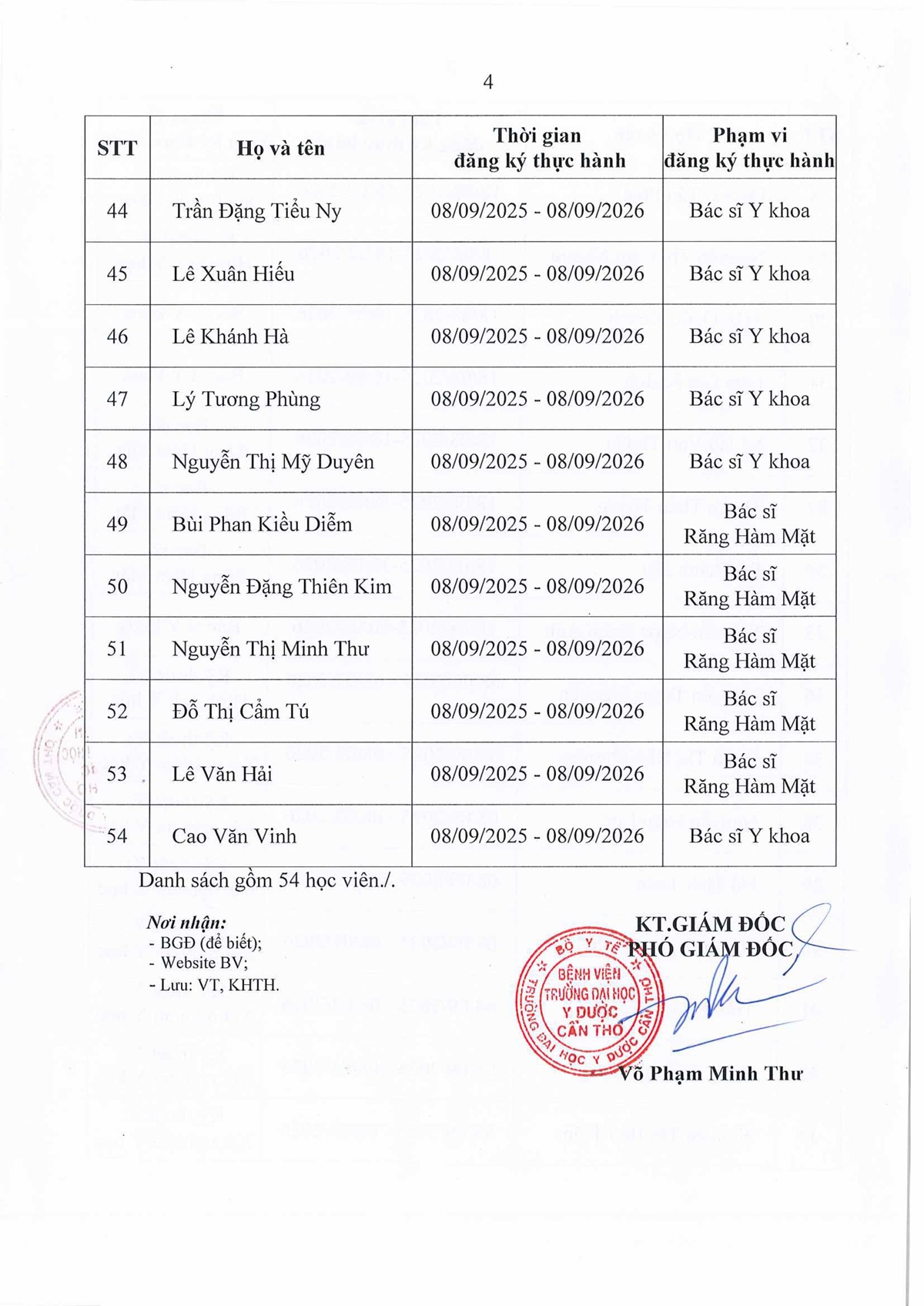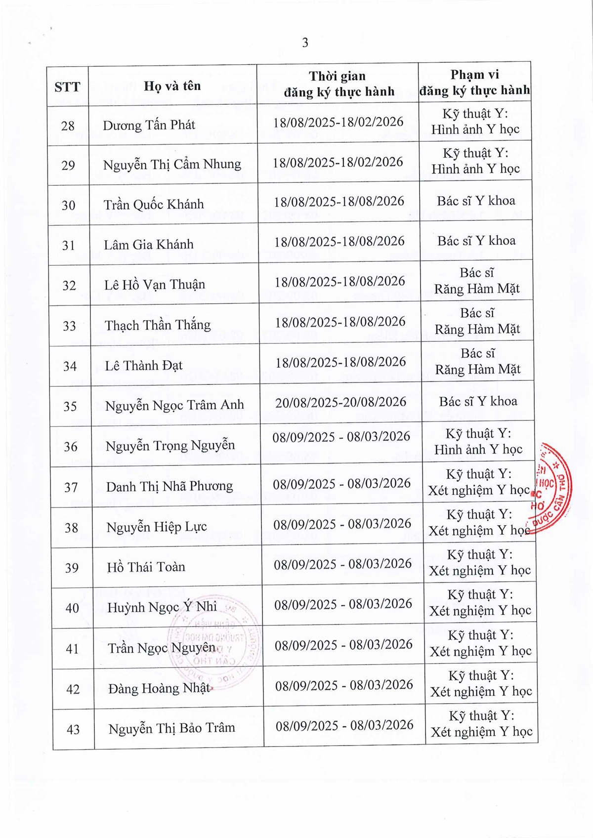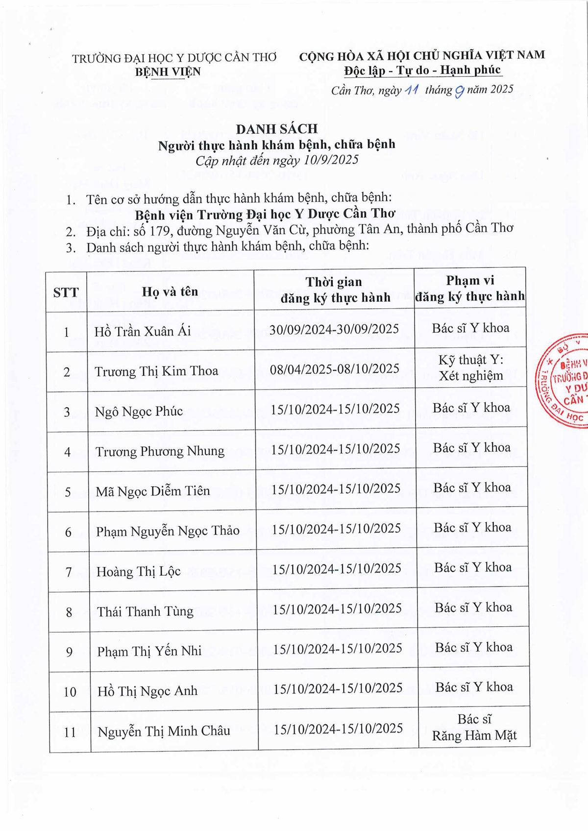 Danh sách người thực hành khám bệnh, chữa bệnh, cập nhật đến ngày 10/9/2025.