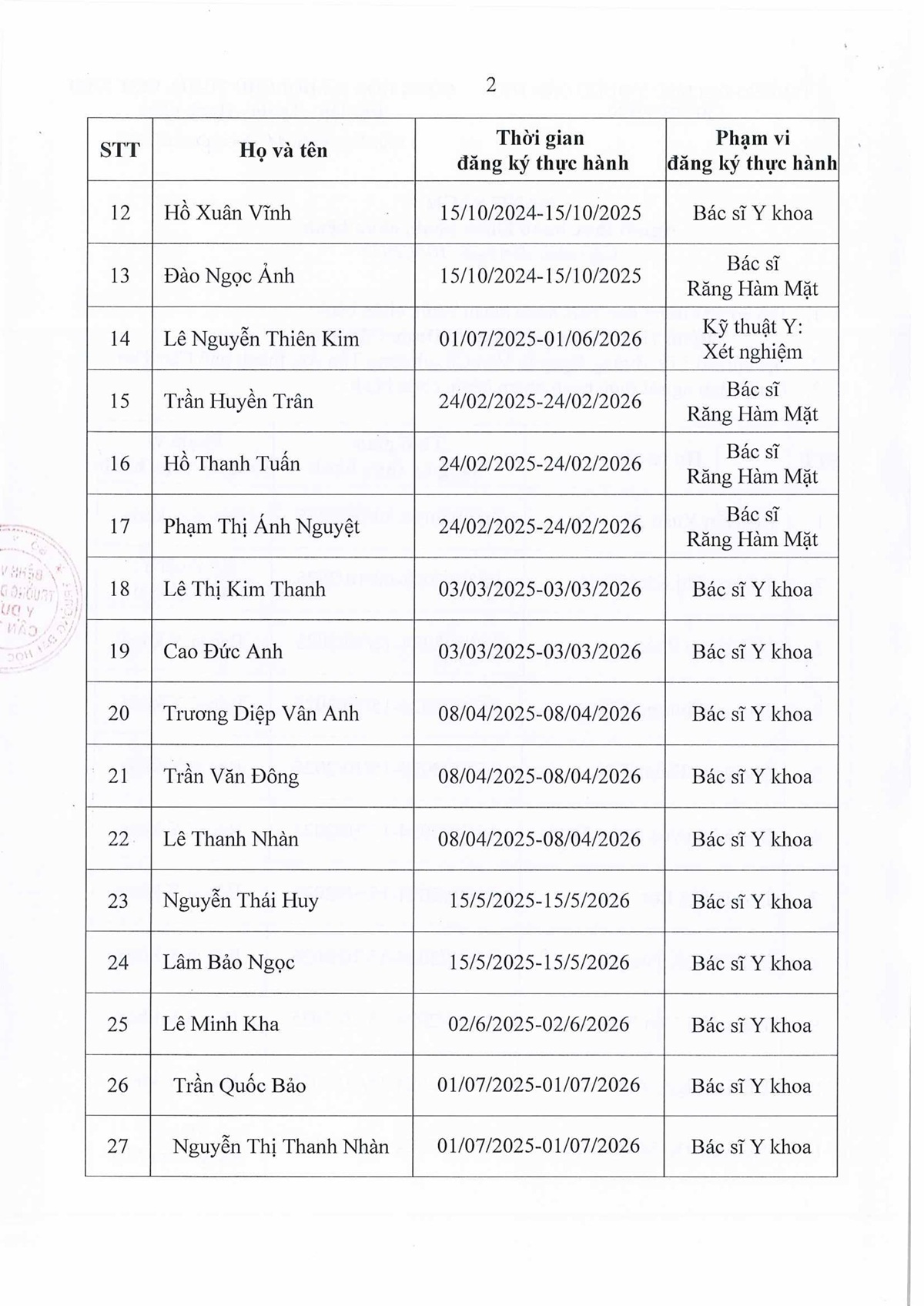 Danh sách người thực hành khám bệnh, chữa bệnh, cập nhật đến ngày 19/8/2025