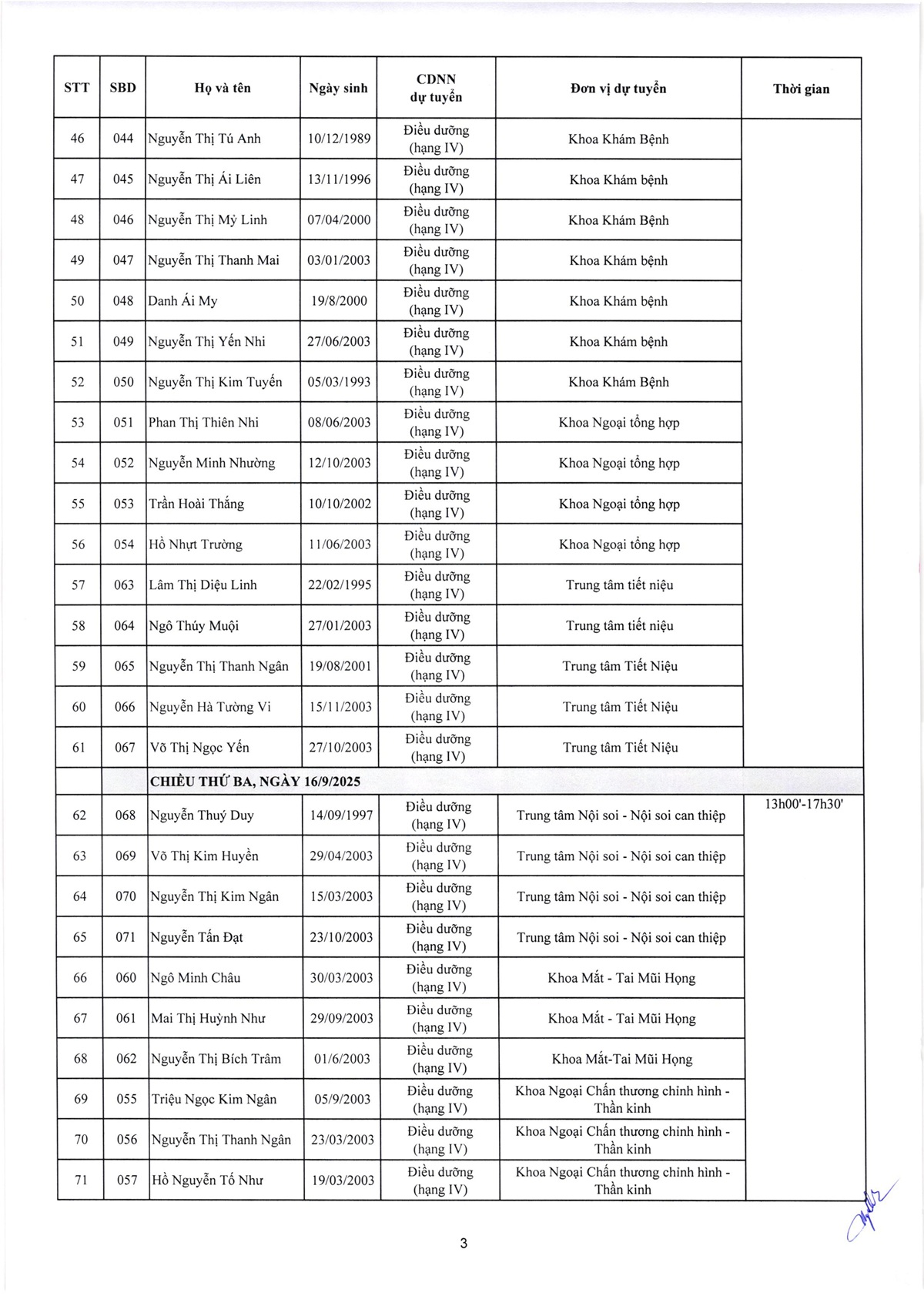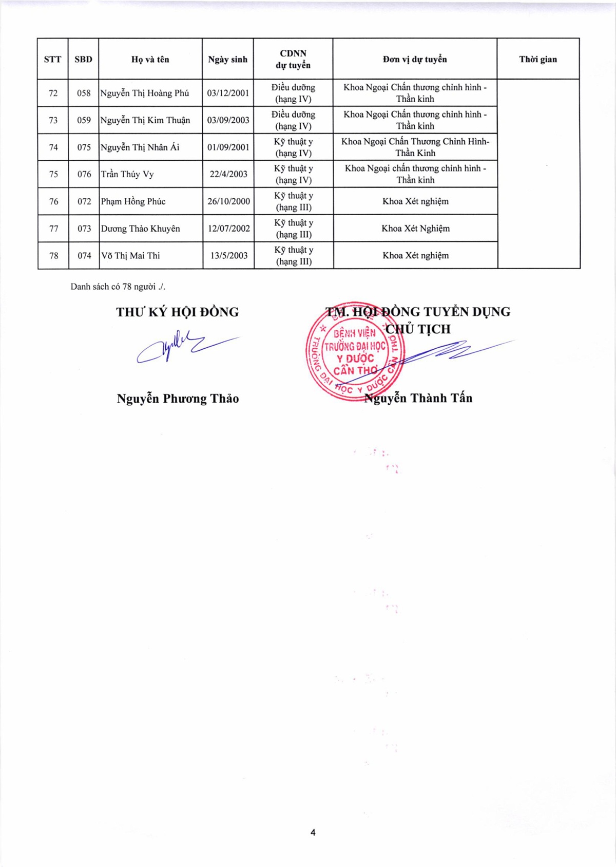 Thông báo số 153 công nhận kết quả trúng tuyển kỳ xét tuyển viên chức năm 2025 của Bệnh viện Trường Đại học Y Dược Cần Thơ