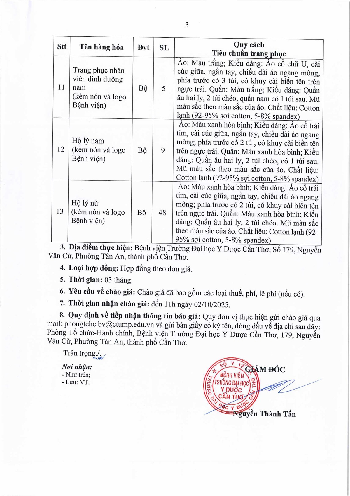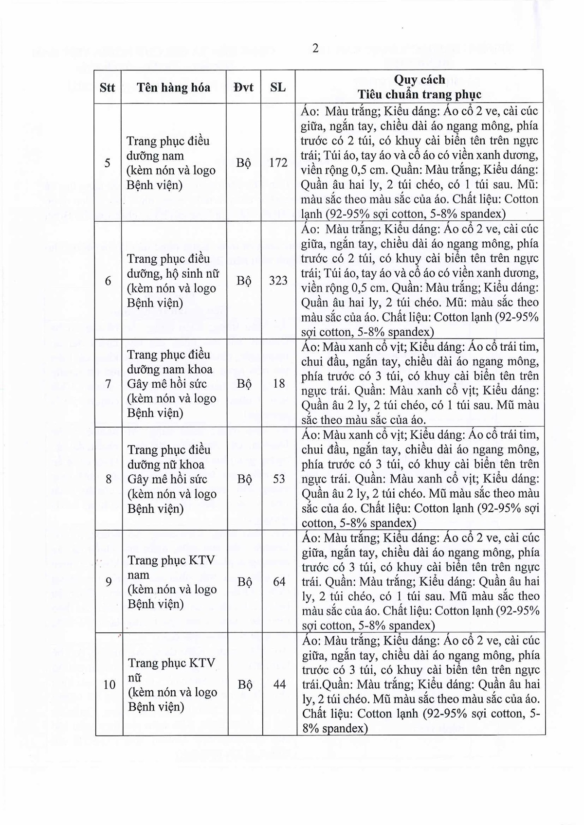 Về việc yêu cầu báo giá cung cấp trang phục chuyên môn, trang phục bảo hộ lao động cho viên chức, người lao động làm việc tại Bệnh viện