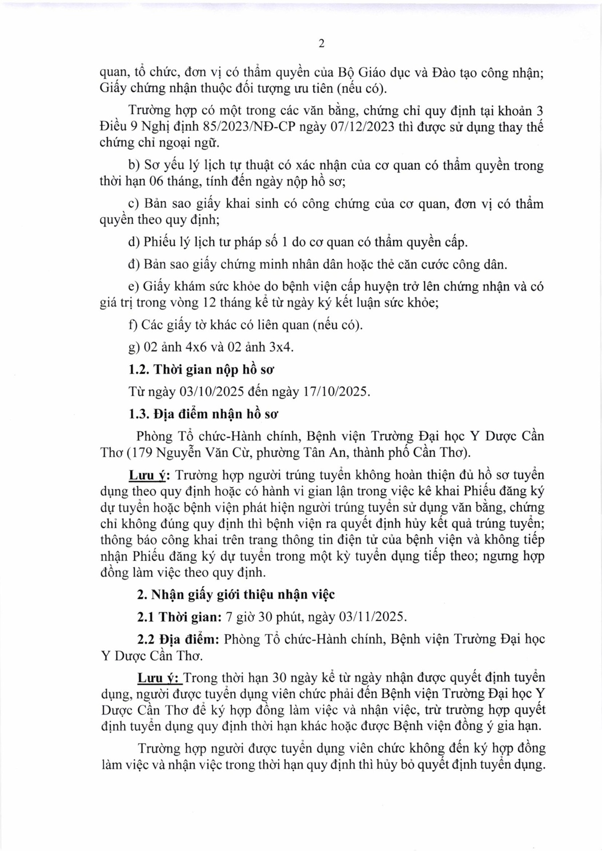 Thông báo xét tuyển viên chức đợt 2 năm 2025 của Bệnh viện Trường Đại học Y Dược Cần Thơ