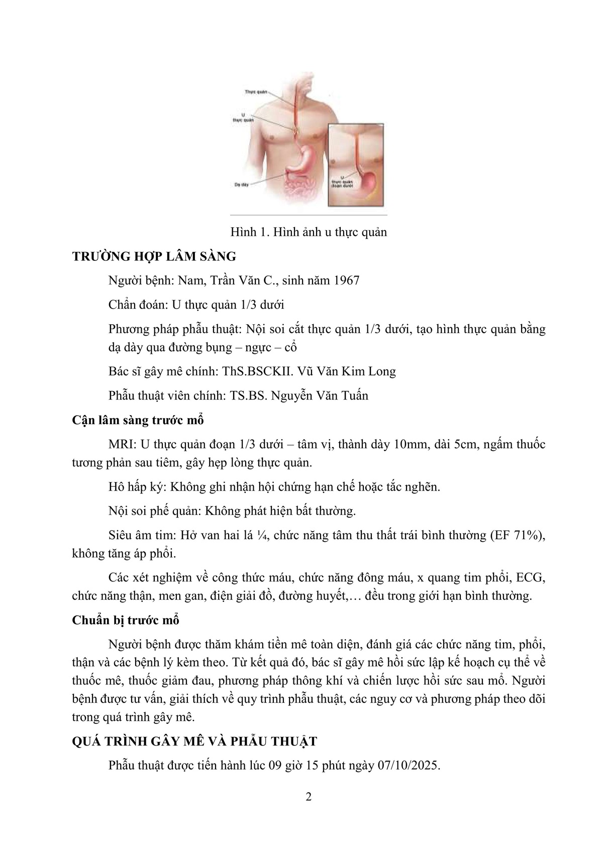 KINH NGHIỆM GÂY MÊ HỒI SỨC TRONG PHẪU THUẬT CẮT THỰC QUẢN, TẠO HÌNH BẰNG DẠ DÀY QUA NỘI SOI - MỘT THÁCH THỨC LỚN.