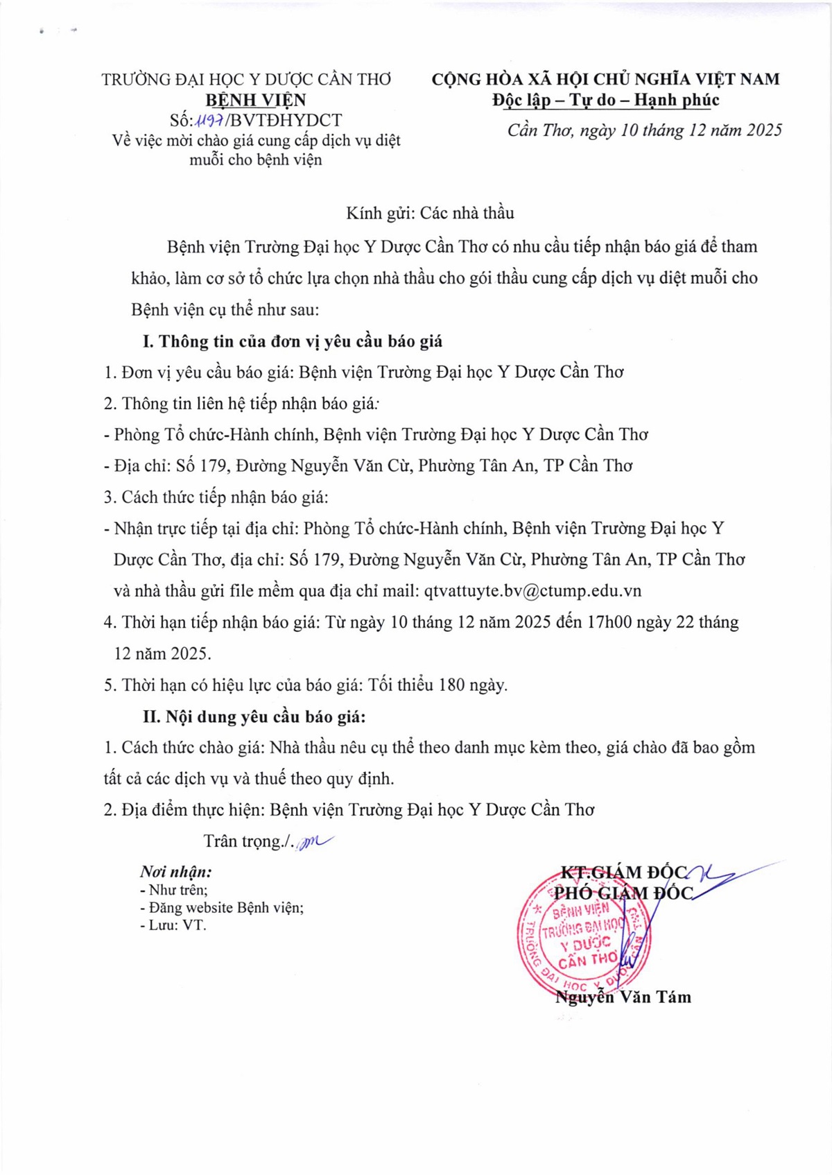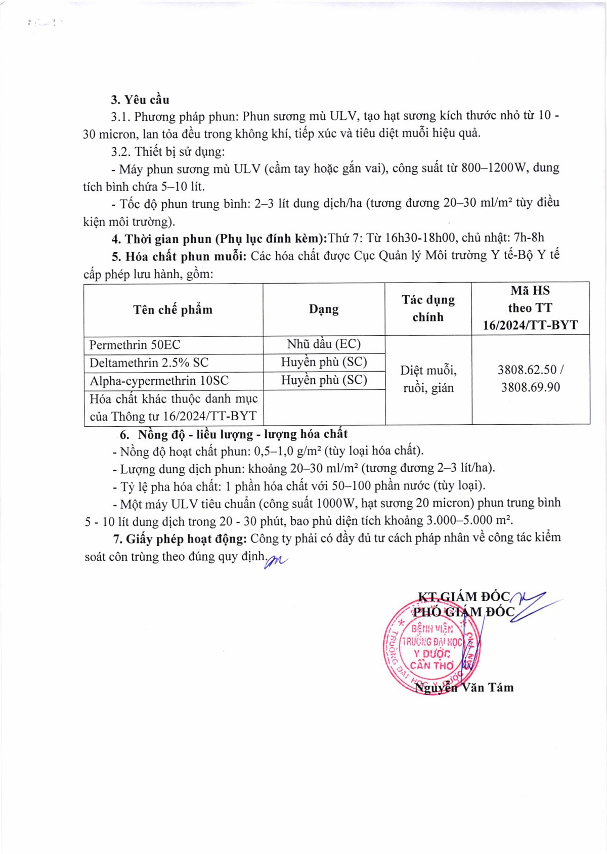 Về việc mời giá chào giá cung cấp dịch vụ diệt muỗi cho Bệnh viện