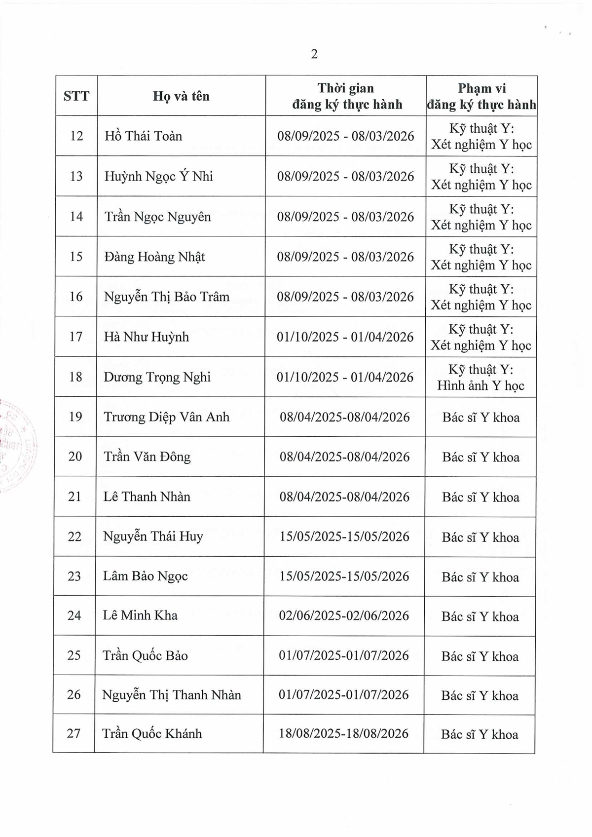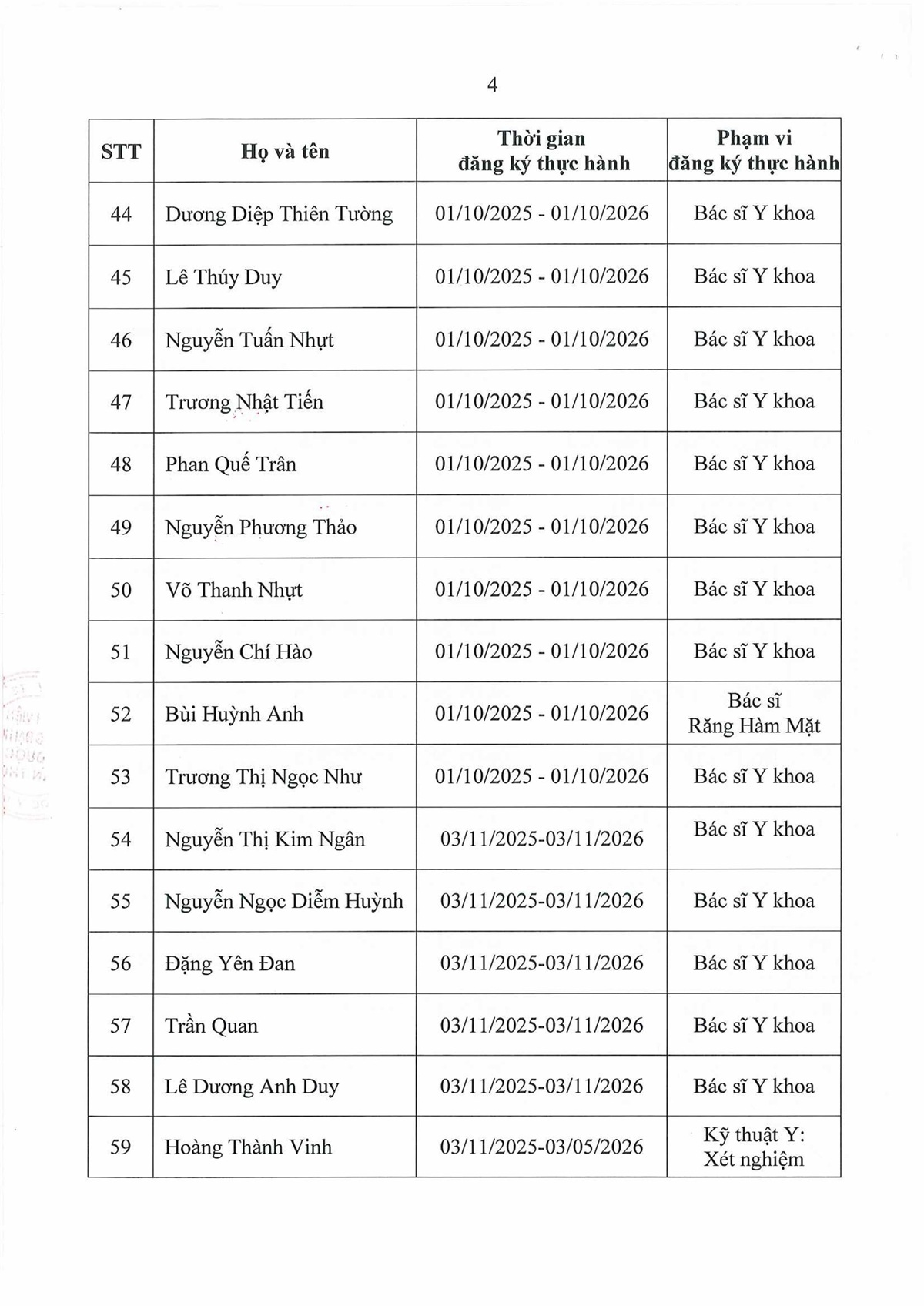 Danh sách người thực hành khám bệnh, chữa bệnh, cập nhật đến ngày 09/12/2025