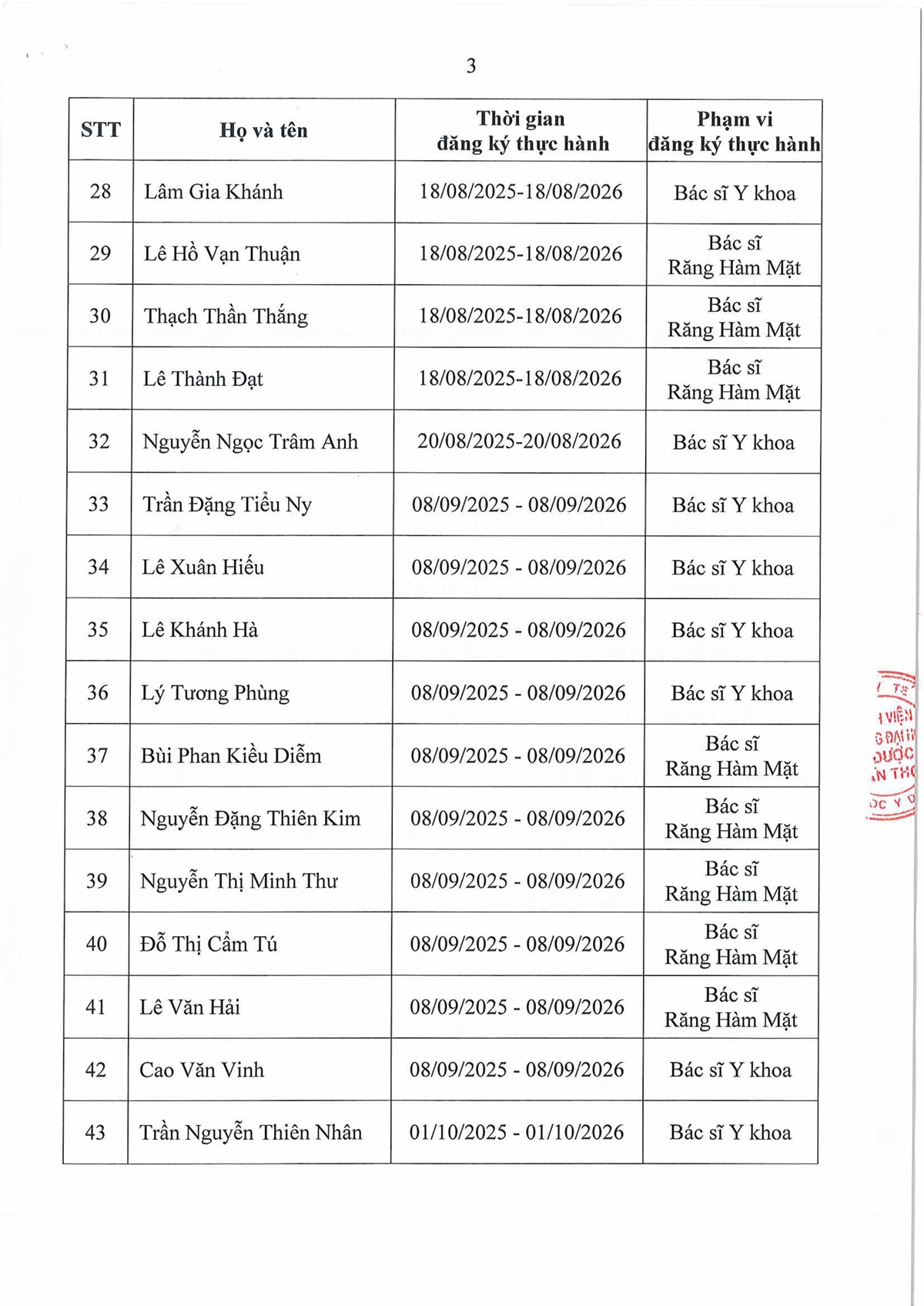 Danh sách người thực hành khám bệnh, chữa bệnh, cập nhật đến ngày 10/9/2025