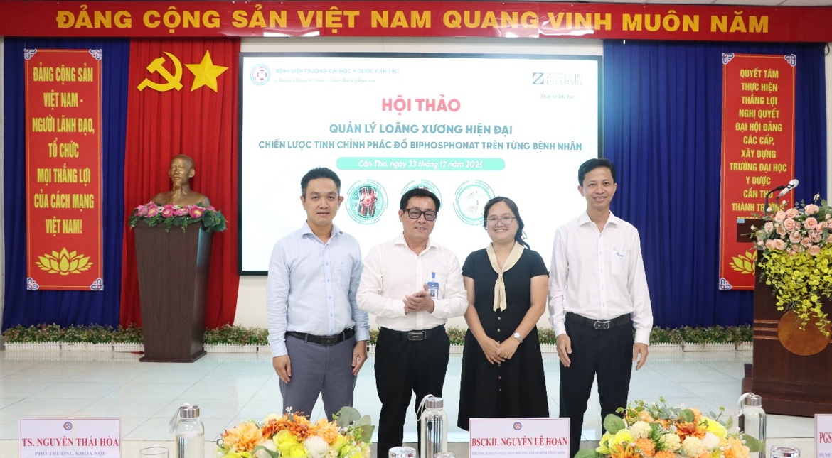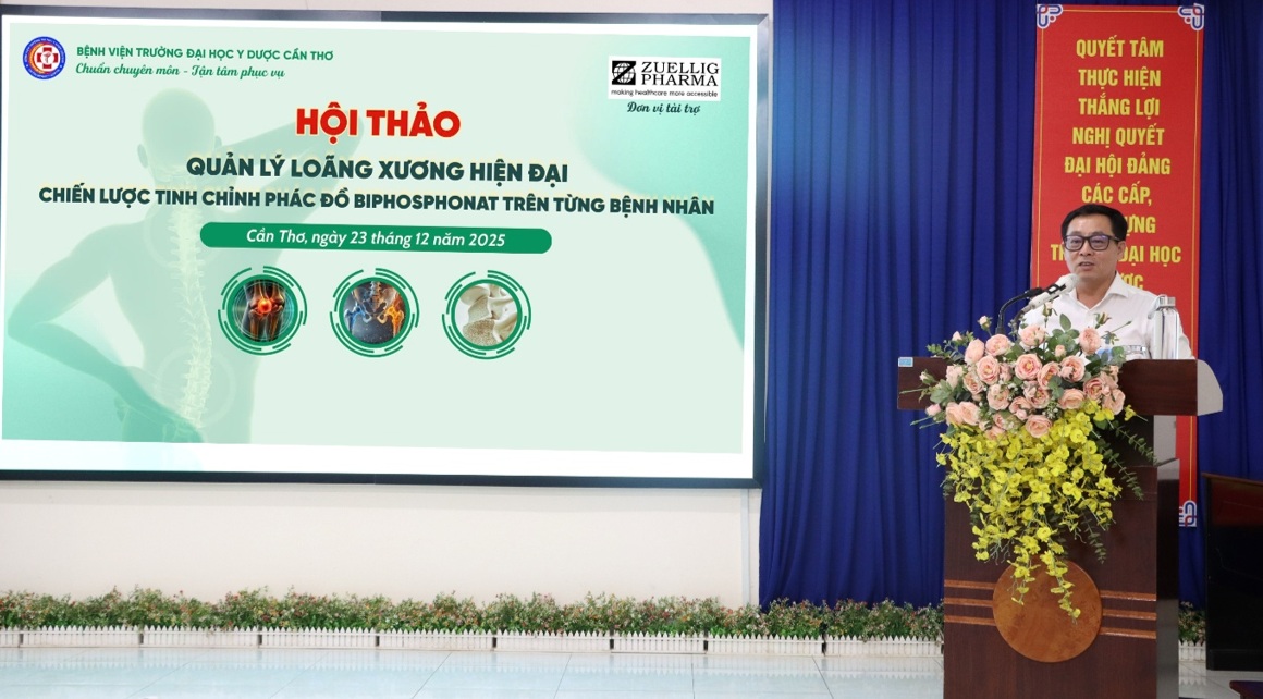Ngày 23/12/2025, Bệnh viện Trường Đại học Y Dược Cần Thơ đã phối hợp cùng Công ty Sang Pharma tổ chức hội thảo khoa học chuyên đề “Quản lý loãng xương hiện đại: Chiến lược tinh chỉnh phác đồ Biphosphonat trên từng bệnh nhân”.