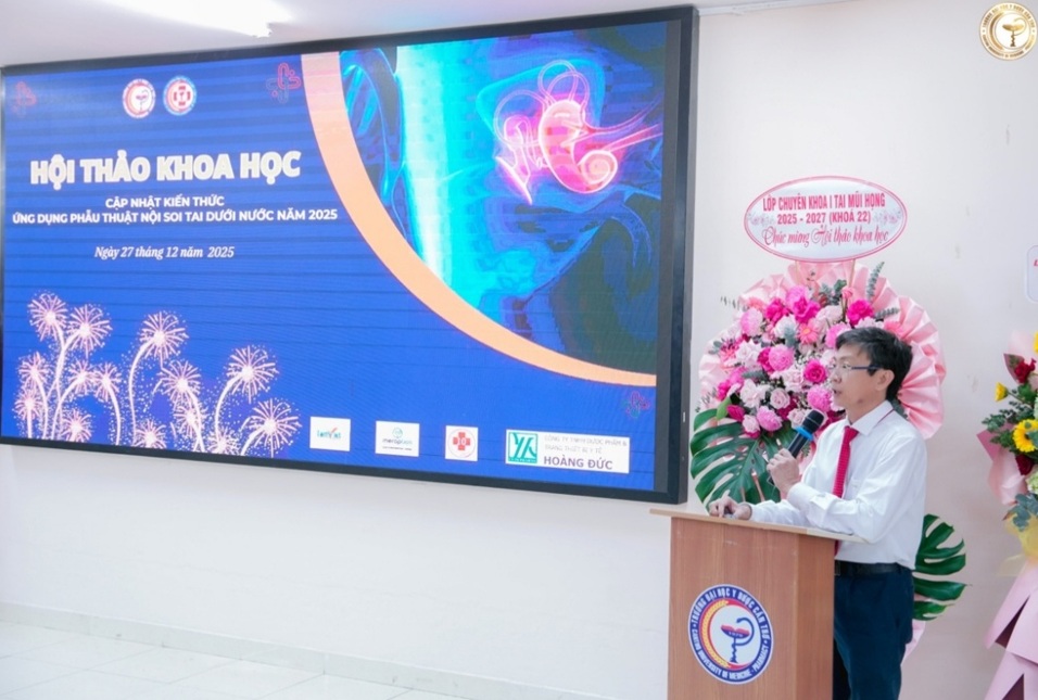 Ngày 27 tháng 12 năm 2025, Bệnh viện Trường Đại học Y Dược Cần Thơ đã tổ chức Hội thảo khoa học cập nhật kiến thức với chủ đề “Ứng dụng phẫu thuật nội soi tai dưới nước”. Đây là hoạt động nằm trong chuỗi chương trình khoa học – công nghệ thường niên của Bệnh viện, nhằm cập nhật những tiến bộ chuyên môn mới, nâng cao năng lực thực hành và tạo diễn đàn trao đổi học thuật cho đội ngũ y bác sĩ, học viên và sinh viên đang công tác, học tập tại đơn vị. Qua hội thảo, Bệnh viện hướng đến việc thúc đẩy hợp tác nghiên cứu khoa học, chuyển giao các kỹ thuật tiên tiến, góp phần nâng cao chất lượng điều trị, bảo đảm an toàn cho người bệnh, đồng thời thúc đẩy sự phát triển của chuyên ngành Tai Mũi Họng nói chung và lĩnh vực Thính học nói riêng tại khu vực Đồng bằng sông Cửu Long.