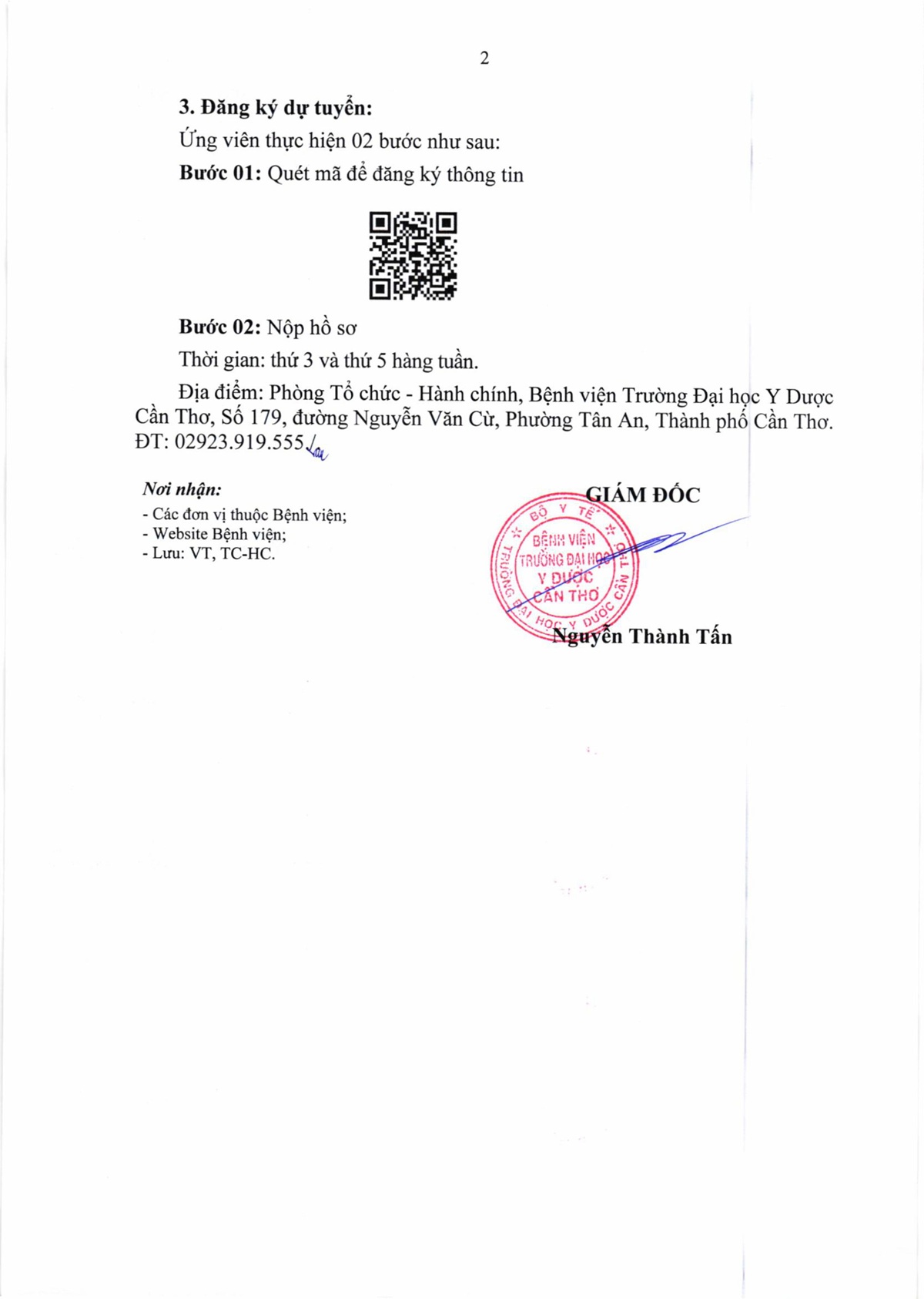 Thông báo số 212 thời gian và địa điểm ứng viên tham dự kiểm tra, sát hạch kỳ xét tuyển viên chức đợt 2 năm 2025 của Bệnh viện Trường Đại học Y Dược Cần Thơ