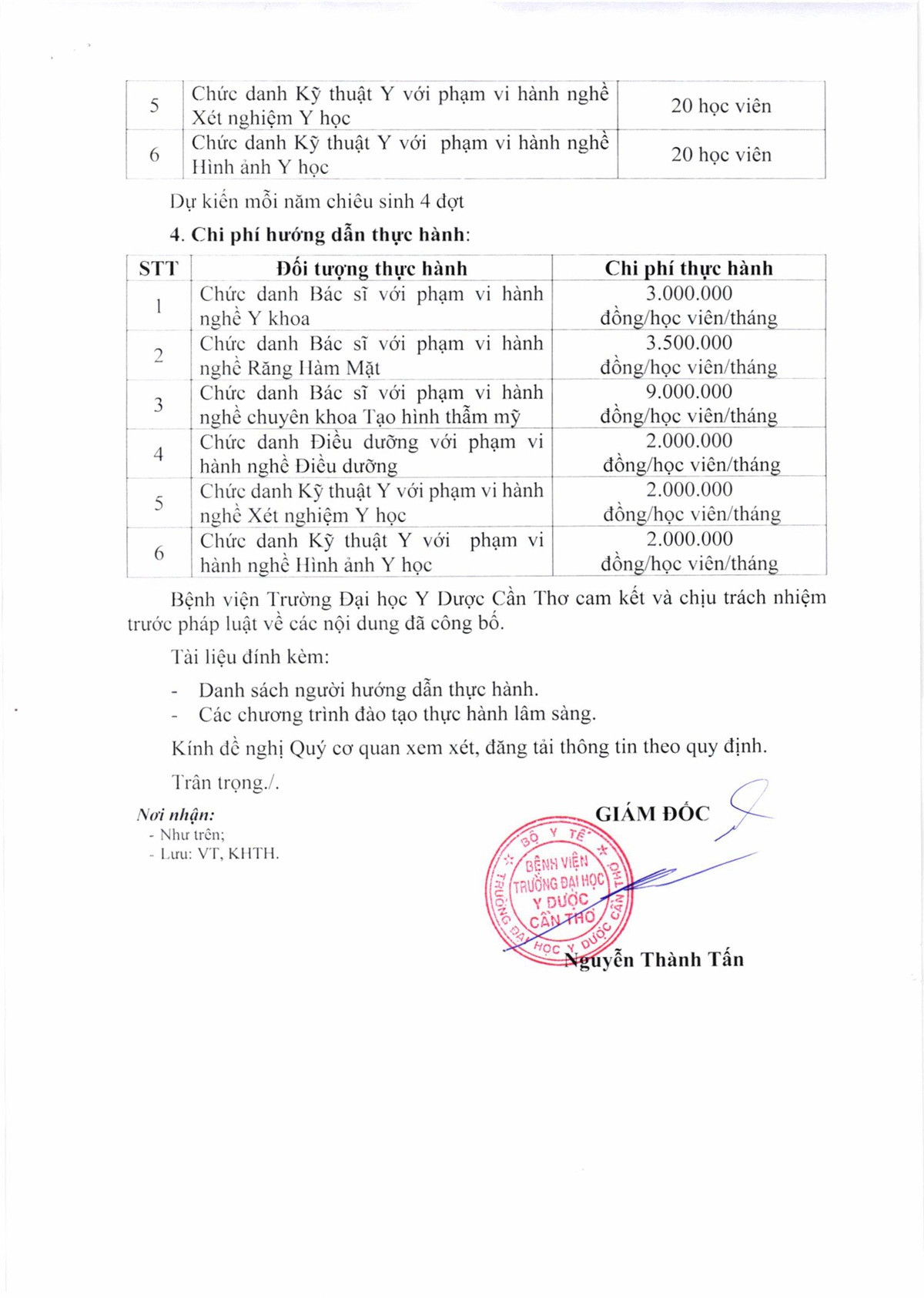 Bản công bô cơ sở khám chữa bệnh là cơ sở thực hành