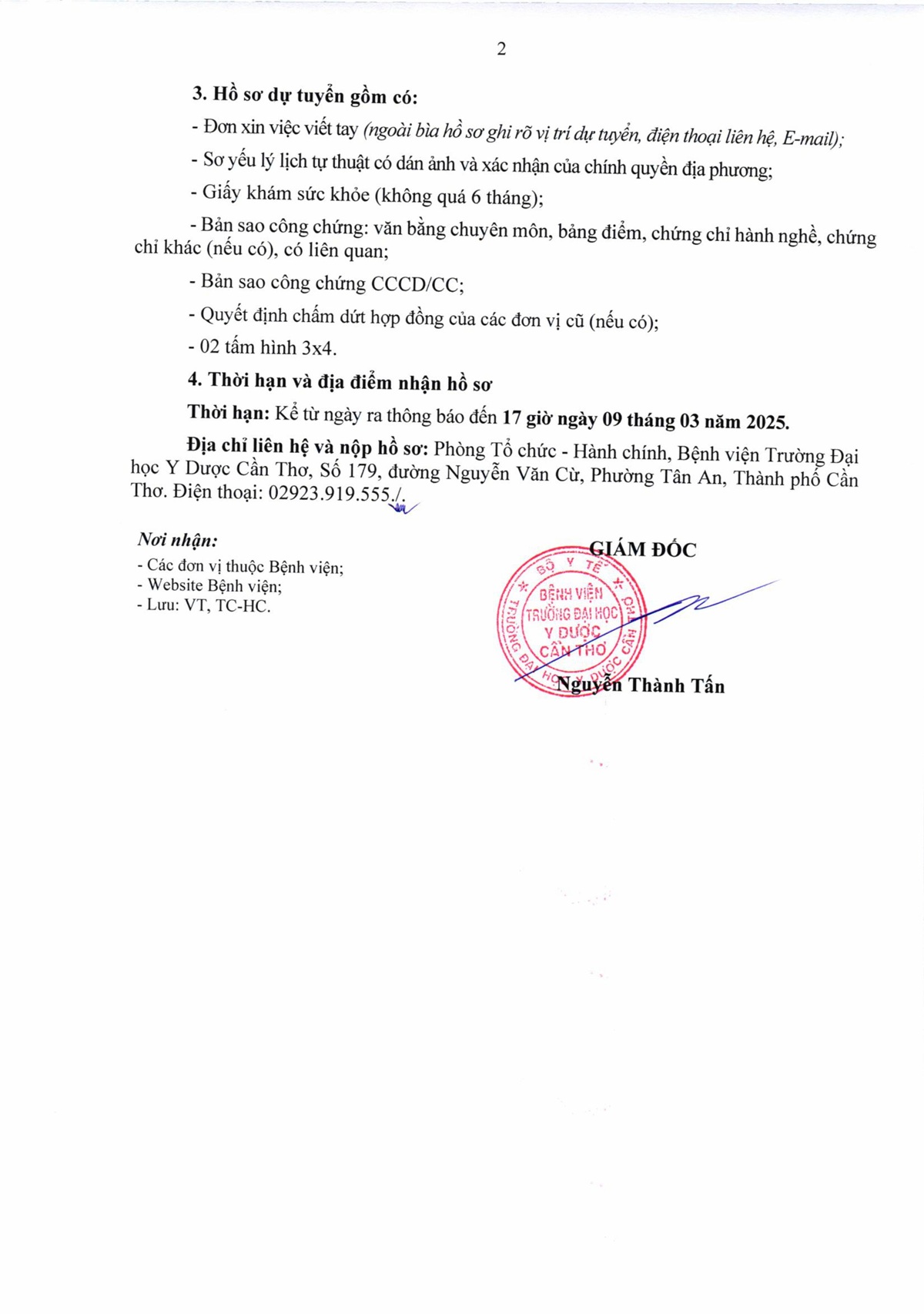 Thông báo số 206 triệu tập ứng viên đủ điều kiện dự tuyển vòng 2 kỳ xét tuyển viên chức đợt 2 năm 2025 của Bệnh viện Trường Đại học Y Dược Cần Thơ